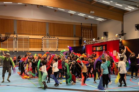 In der vergangenen Woche feierten 350 Schülerinnen und Schüler der Grundschule Gerolstein An der Waldstraße und des Hubertus-Radar-Förderzentrums zwei eindrucksvolle Zirkusvorstellungen. Dabei unterstützt wurden die jungen Artistinnen und Artisten nicht nur von ihren Lehrerinnen und Lehrern, sondern auch durch das professionelle Können und Wissen von Tobi und Daniel des Projektzirkus StandArt.