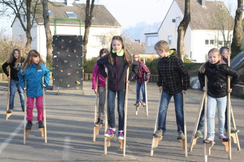 Dank einer großzügigen Spende von Herrn Dieter Blumberg haben unsere Schülerinnen und Schüler viel Spaß mit den neuen Stelzen. Sie sind ein sehr gefragtes Spielgerät und werden häufig genutzt.
