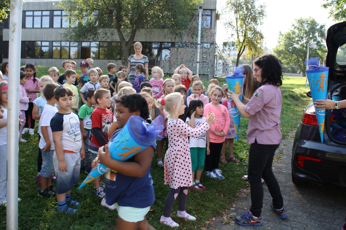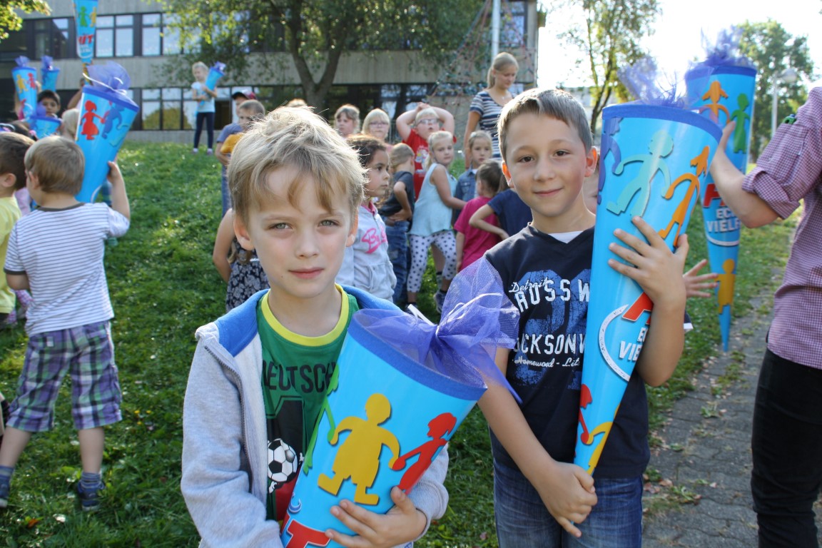 Wieder einmal spendete der Hit-Markt Gerolstein Schultüten für unsere I-Dötzchen. "Was da wohl drin ist?", wollten die Erstklässler wissen und hielten noch tapfer den gemeinsamen Fototermin durch. Dann endlich durften sie das Geheimnis des Inhaltes ihrer Schultüte lüften!